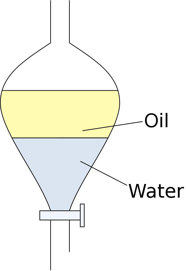 Credits Zwei nicht mischbare Lösungsmittel Grafik: Anonymous. Borb assumed (based on copyright claims)., SeparatoryFunnel, CC BY-SA 3.0↩︎