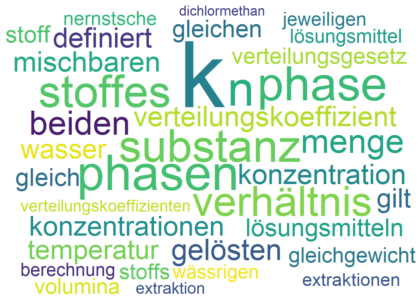 Das bedeutet, der Stoff ist in Dichlormethan zehnmal konzentrierter als in Wasser, wenn das Verteilungsgleichgewicht erreicht ist.