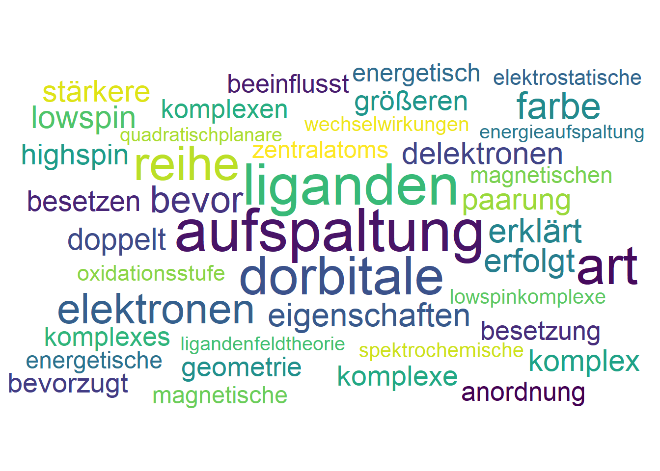 Das IMPP fragt besonders gerne nach dem Zusammenhang von Farbe und Orbitalaufspaltung in Komplexen - ihr solltet also verstehen, wie die spektrochemische Reihe und die d-Orbitalaufspaltung die Lichtabsorption und somit die Farbigkeit beeinflussen.