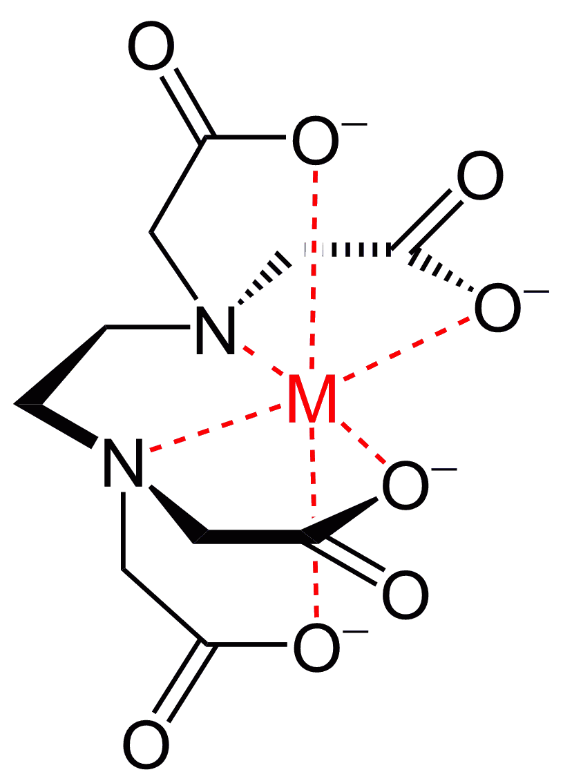 Credits Chelatkomplex EDTA Grafik: Shaddack at English Wikipedia, Metal-EDTA, marked as public domain, more details on Wikimedia Commons↩︎