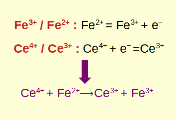 Credits Beispiel einer Redoxreaktion Grafik: Grogu60, Reaction doxydoréduction entre cérium IV et fer II, CC BY-SA 4.0↩︎