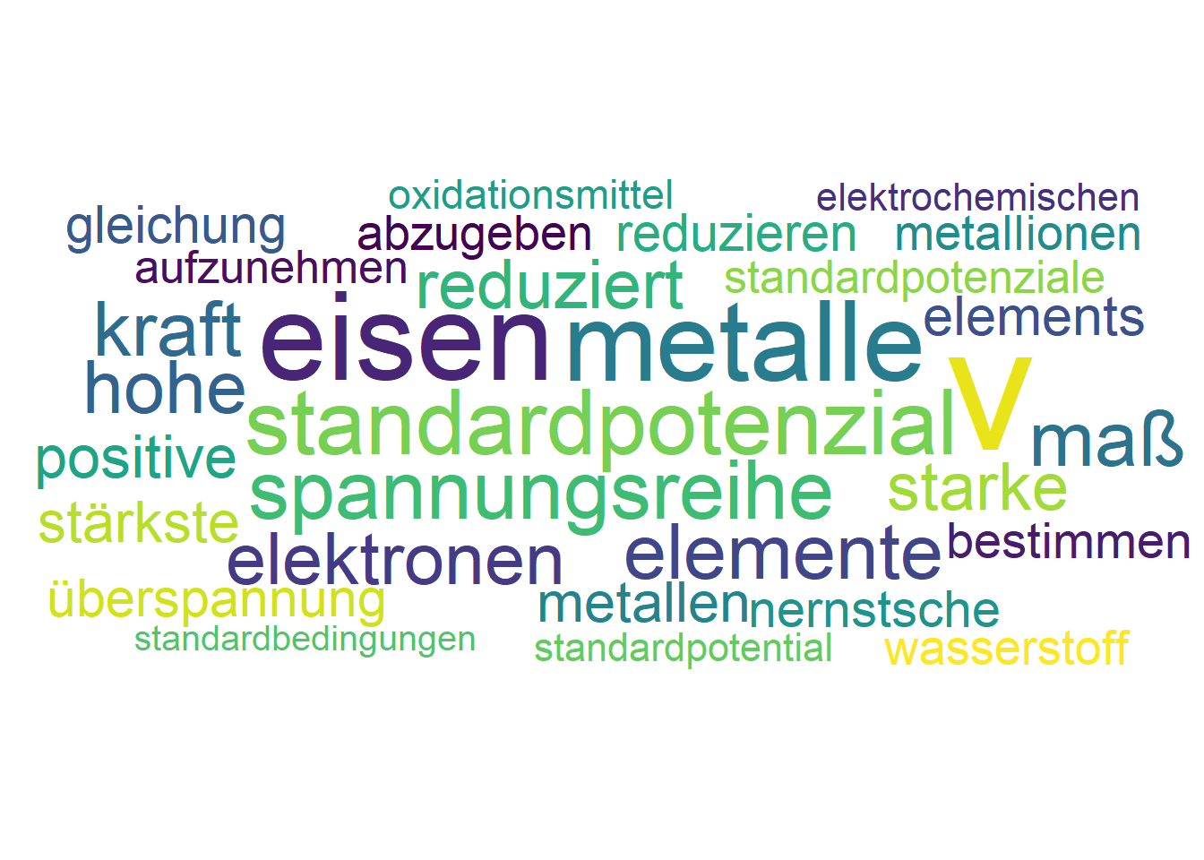 Das Standardpotenzial einer Substanz entscheidet darüber, wie leicht sie Elektronen abgeben oder aufnehmen kann. In der Spannungsreihe stehen Elemente mit negativerem Standardpotenzial unter denen mit positiverem Potenzial. Dies bedeutet, dass Metalle wie Eisen Metallionen mit höheren Standardpotenzialen durch Reduktion abscheiden können.