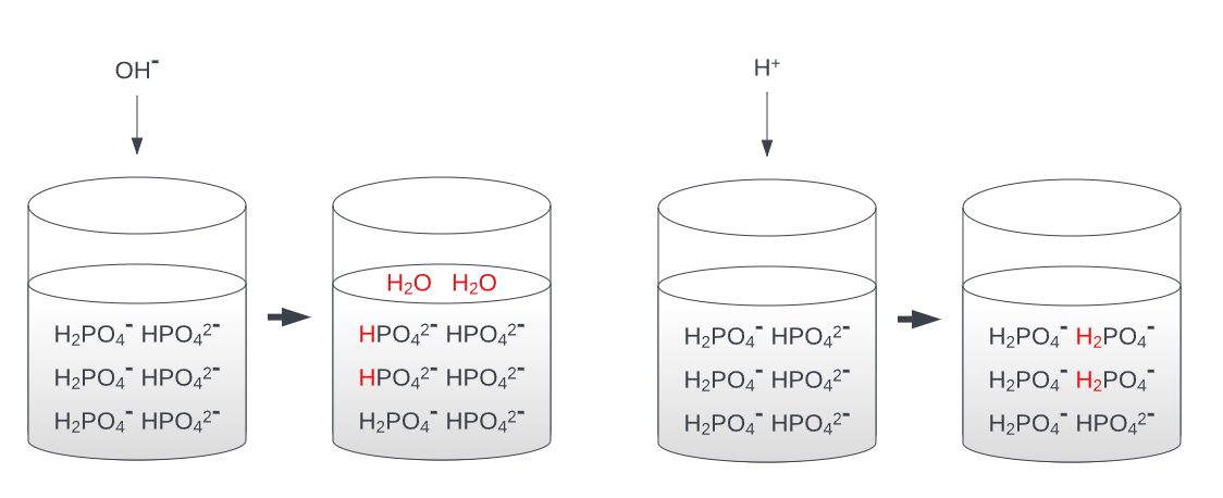 Das Konzept der Puffer und ihr Verhalten bei Säure- und Basezusatz ist in der Grafik dargestellt.