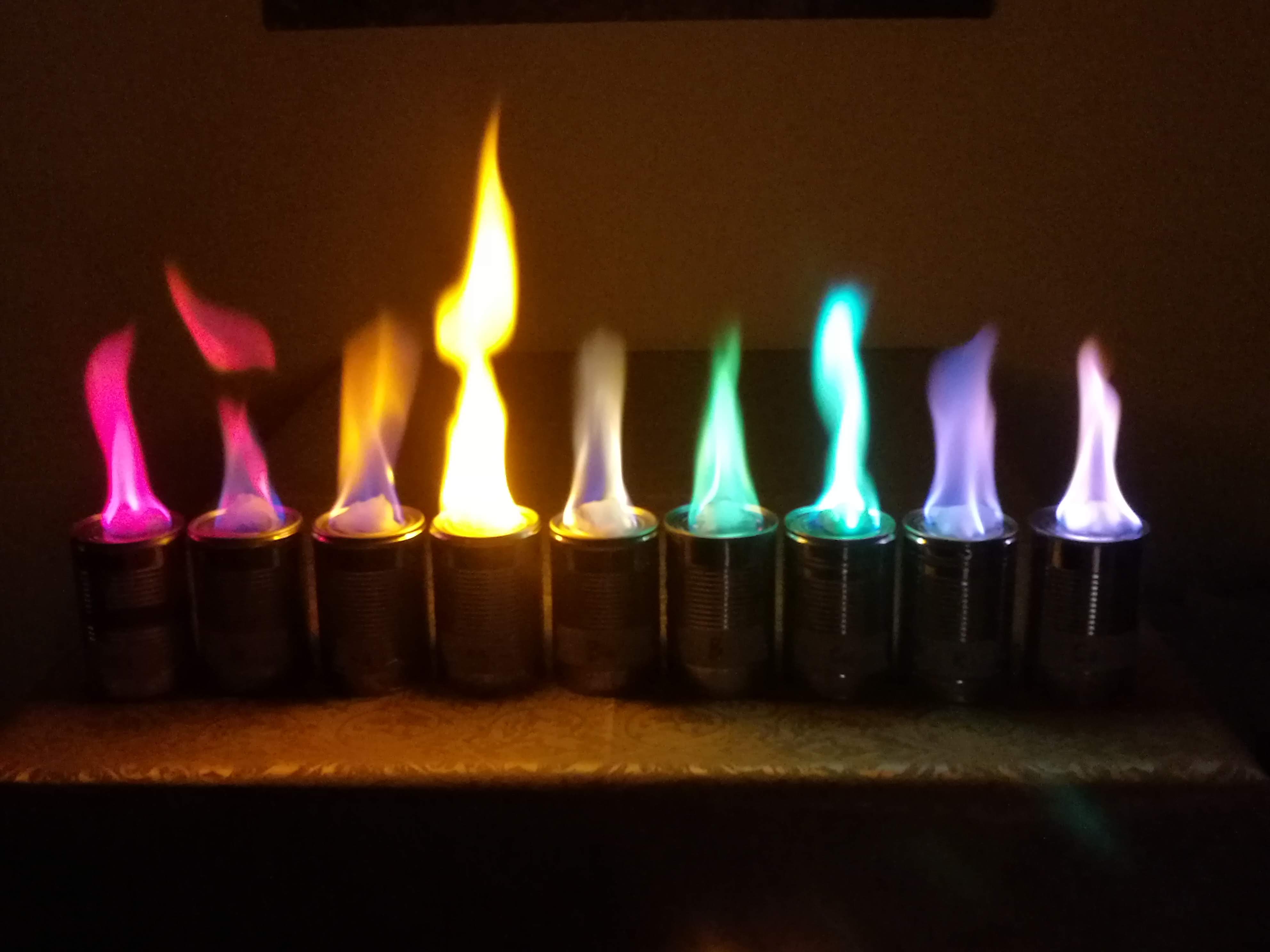 Credits Die Flammenfärbung von verschiedenen Metallen. Lithium erzeugt die knallrote Flamme ganz links. Grafik: Hegelrast, Coloured flames of methanol solutions of metal salts and compounds, CC BY-SA 4.0↩︎
