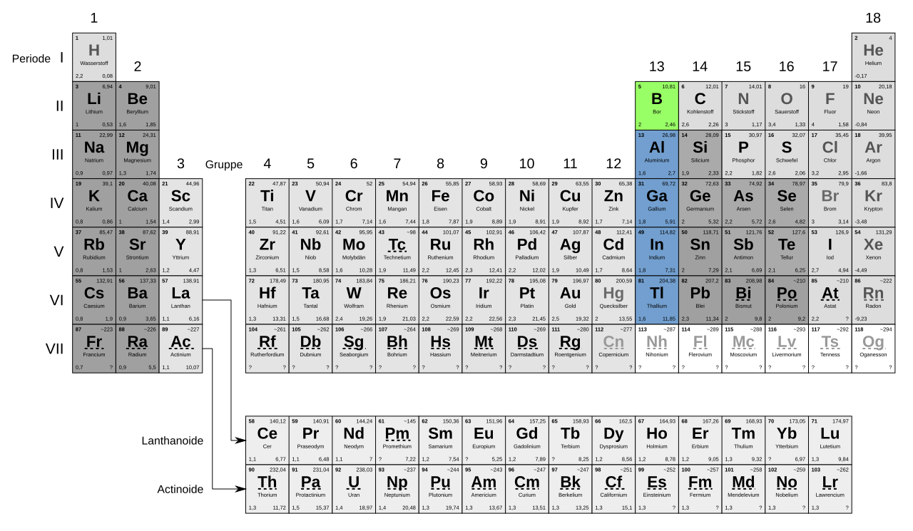 Credits Stellung der Borgruppe im PSE Grafik: Mrmw, Periodensystem newdraft, bearbeitet von MK, CC0 1.0↩︎