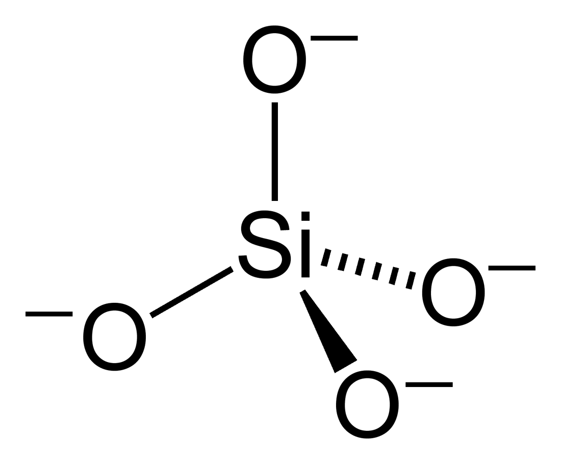 Credits Struktur von Silikat Grafik: Benjah-bmm27, Silicate-tetrahedron-2D, als gemeinfrei gekennzeichnet, Details auf Wikimedia Commons↩︎
