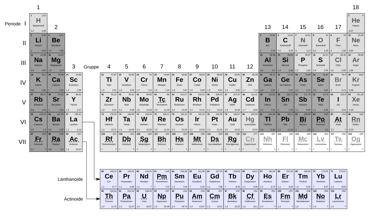 Credits Stellung der Lanthanoide und Actinoide im PSE Grafik: Mrmw, Periodensystem newdraft, bearbeitet von MK, CC0 1.0↩︎