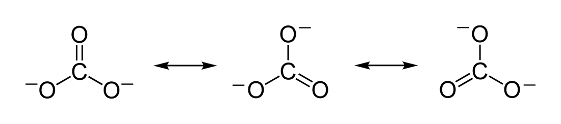 Credits Mesomere Grenzstrukturen von Carbonat Grafik: Benjah-bmm27, Carbonate-ion-resonance-2D, als gemeinfrei gekennzeichnet, Details auf Wikimedia Commons↩︎