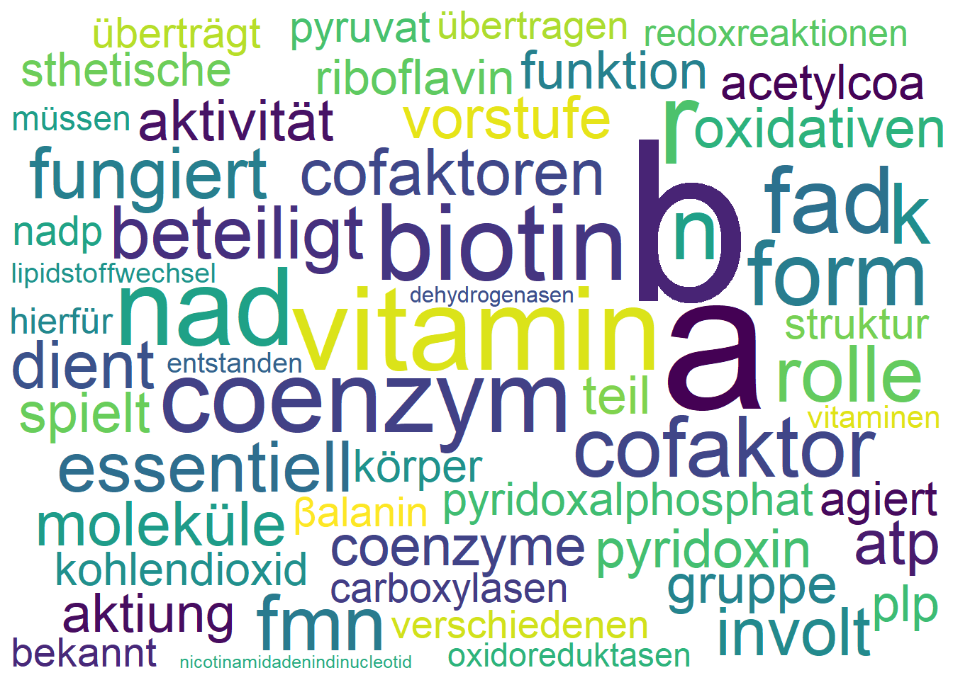 | Biotin | Carboxylierungsreaktionen | Pyruvat-Carboxylase, Acetyl-CoA-Carboxylase | Wichtig für Fettsäuresynthese und Glukoneogenese |