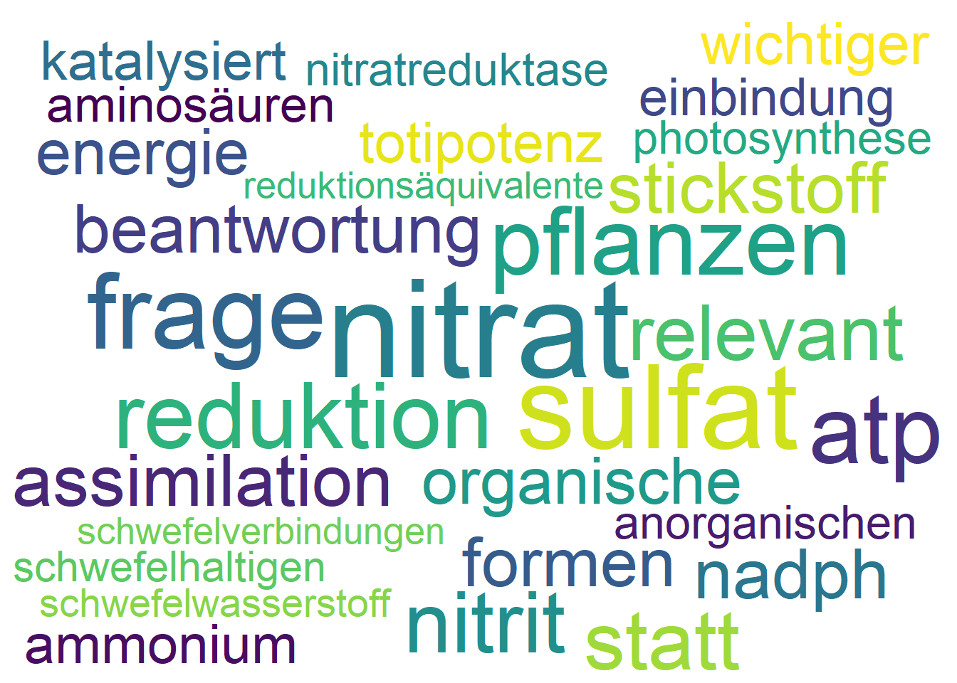 | Reduktion von Nitrit zu Ammonium | Reduktion von Nitrit zu Ammonium durch Ferredoxin-Nitratreduktase in den Plastiden, Verwendung von Elektronen von Ferredoxin. | Ferredoxin-Nitratreduktase | Ferredoxin |