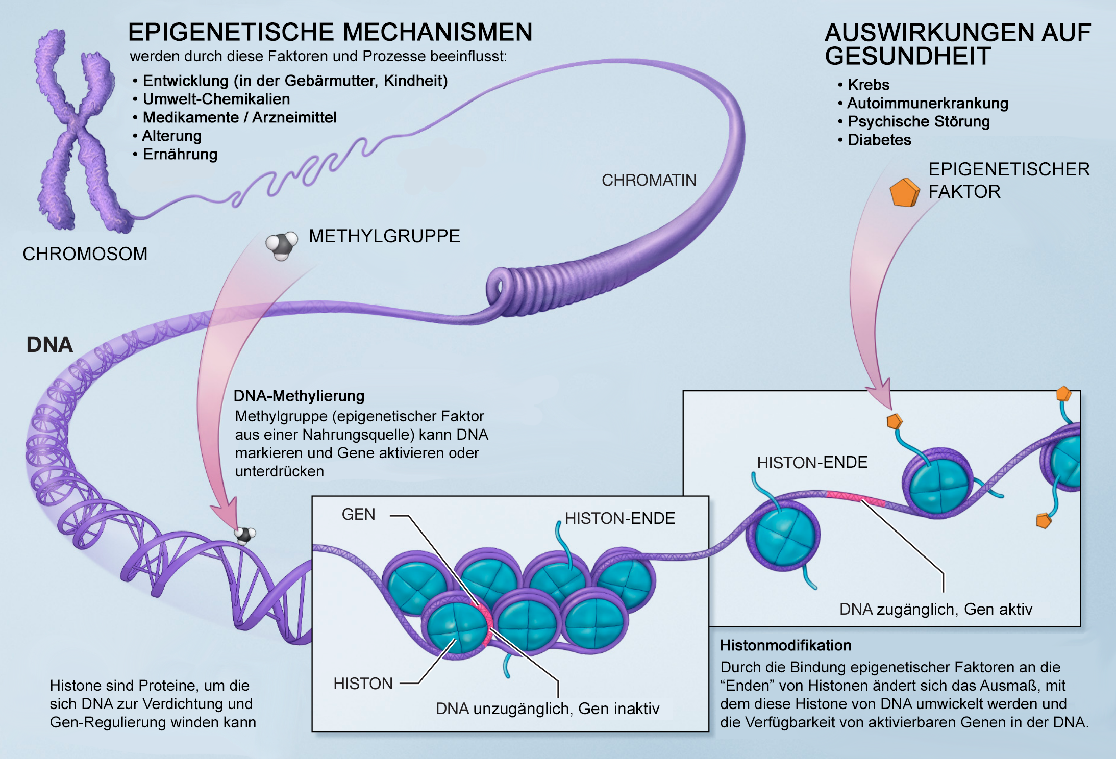 Credits Epigenetische Mechanismen. Grafik: File:Epigenetic mechanisms.png: National Institutes of Health derivative work: Henry Sonnet, Epigenetische Mechanismen, CC0 1.0↩︎