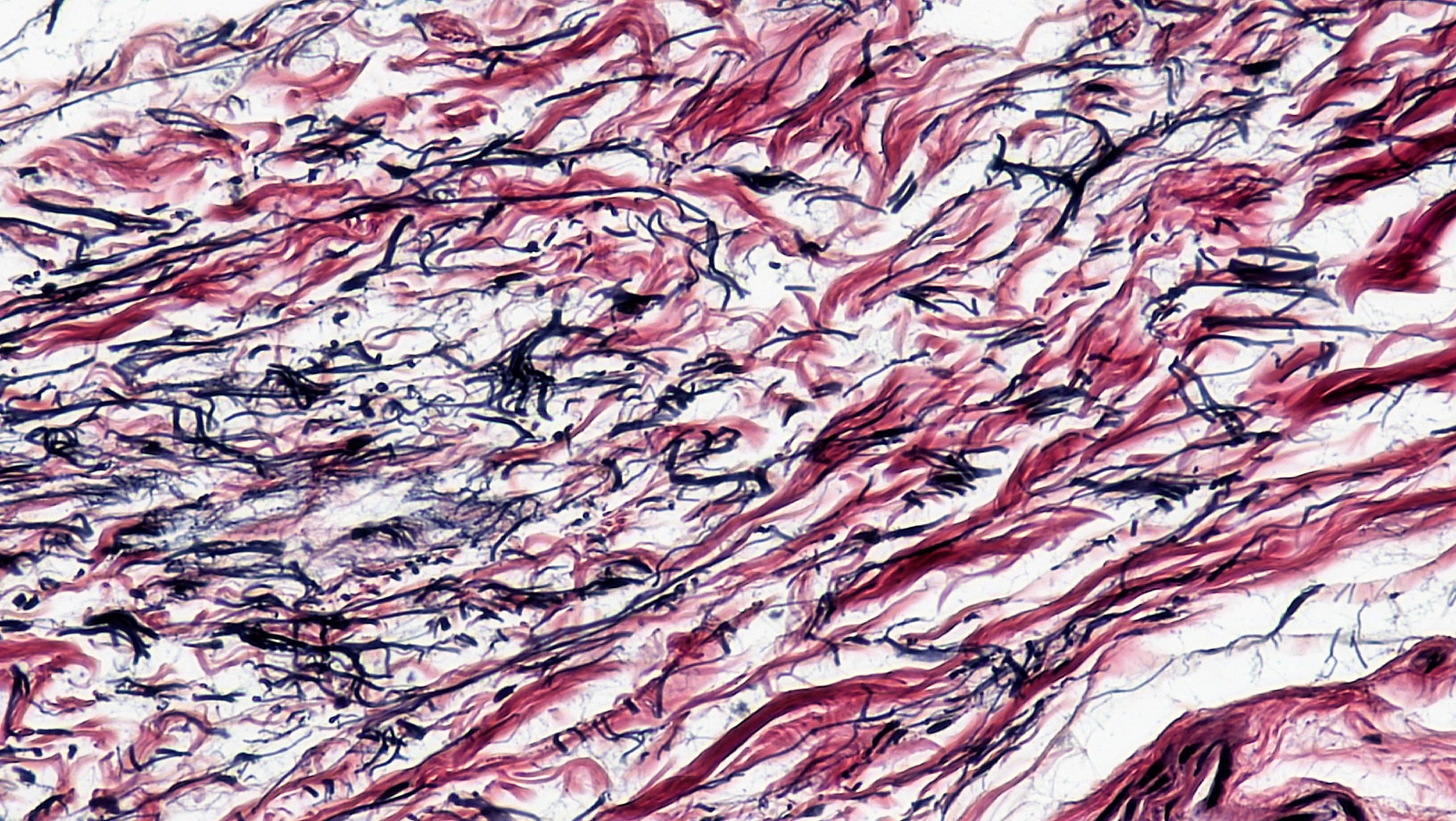 Credits Querschnitt eines Bindegewebes. Grafik: Berkshire Community College Bioscience Image Library, Connective Tissue Human Elastic Tissue (40049097400), CC0 1.0↩︎