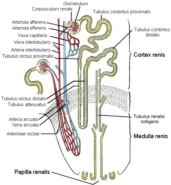 Credits Feinbau der Niere, schematisch. Grafik: Henry Vandyke Carter creator QS:P170,Q955620 Henry Gray creator QS:P170,Q40319 , Kidney nephron, als gemeinfrei gekennzeichnet, Details auf Wikimedia Commons↩︎
