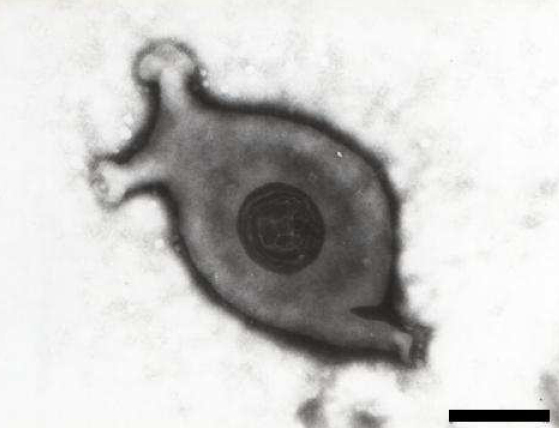 Credits Beispiel für die Gruppe der Mycoplasmen. Grafik: M.H.B. Catroxo and A.M.C.R.P.F. Martins, Mycoplasma gallisepticum, CC BY 3.0↩︎