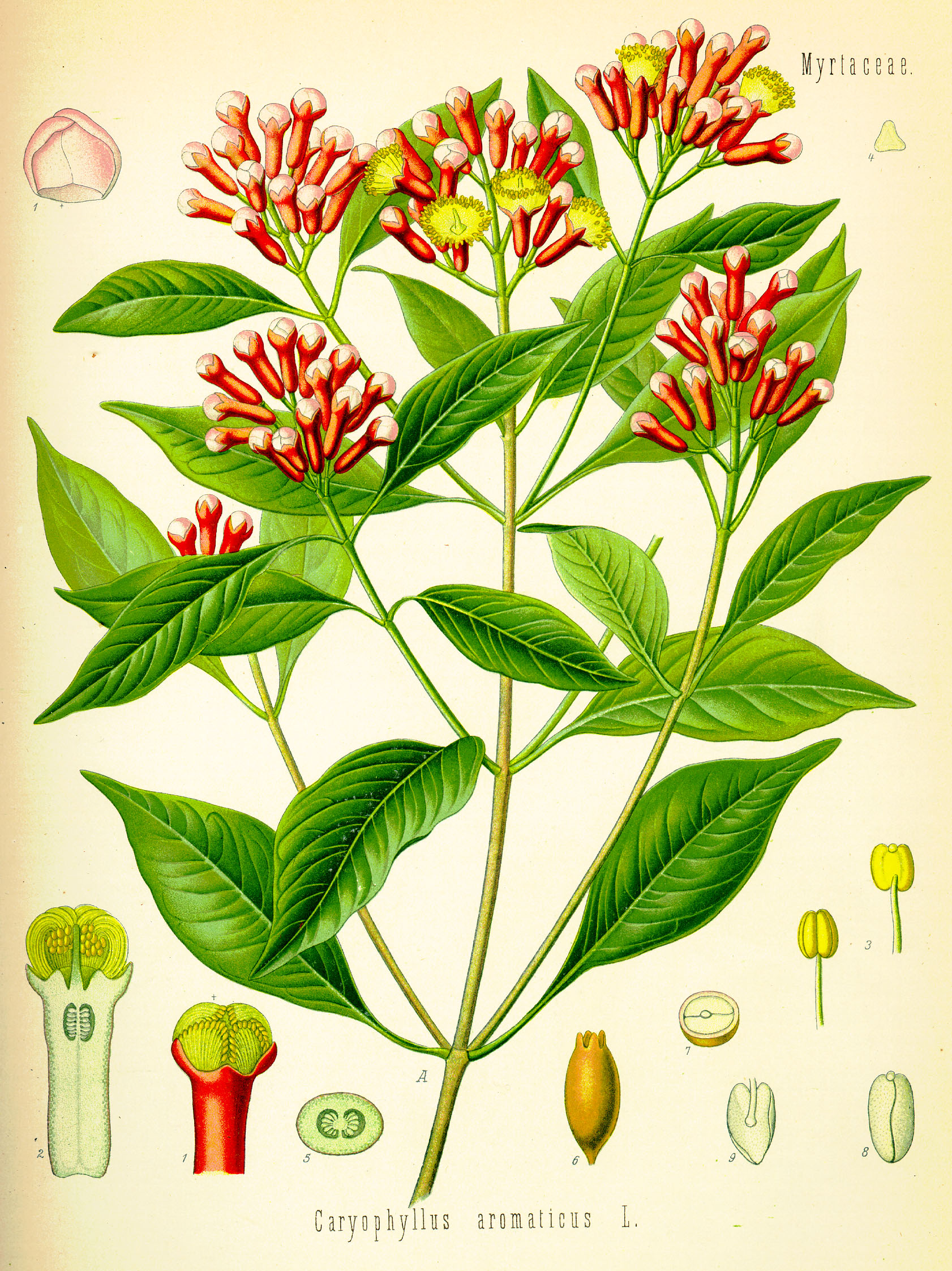 Credits Illustration eines Vertreters (Caryophyllus aromaticus) der Pflanzenfamilie Caryophyllaceae. Grafik: Franz Eugen Köhler, Köhlers Medizinal-Pflanzen, als gemeinfrei gekennzeichnet, Details auf Wikimedia Commons↩︎