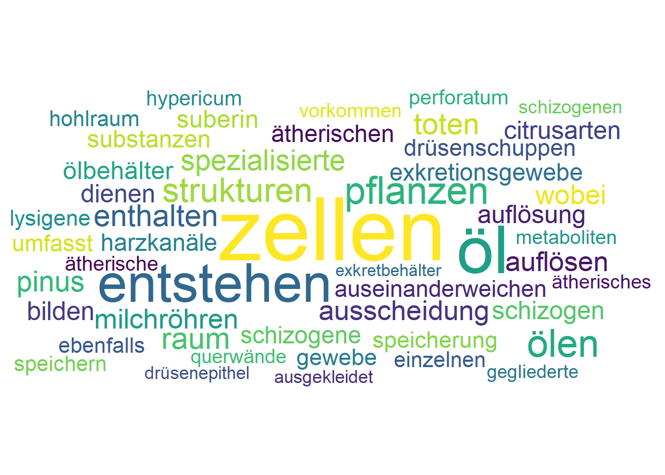 Die Auflösung von Zellen führt zur Freisetzung von ätherischen Ölen, die dann in den entstandenen Hohlräumen gespeichert werden. Die umliegenden Zellen übernehmen die Sekretionsfunktion und sorgen für die Produktion und Aufrechterhaltung der ätherischen Öle.