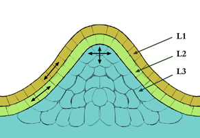 Credits Schema: Sprossapikalmeristem mit den Schichten L1, L2 und L3. Grafik: , Méristème couches, CC BY-SA 3.0↩︎