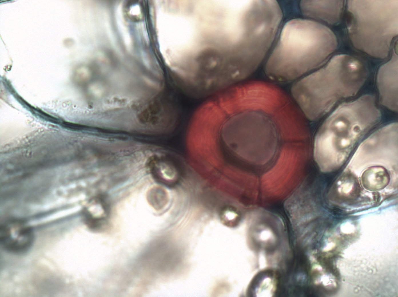 Credits Querschnitt durch eine Sklerenchymfaser im Parenchym des Blattstiels von Begonia, mit Safranin T gefärbt. Grafik: Roland Gromes, Sklerenchymfaser Begonia, Querschnitt, CC BY-SA 4.0↩︎