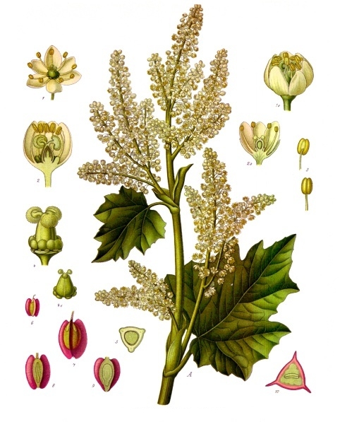 Credits Illustration eines Vertreters (Rheum officinale) der Pflanzenfamilie Polygonaceae. Grafik: Franz Eugen Köhler, Köhlers Medizinal-Pflanzen, als gemeinfrei gekennzeichnet, Details auf Wikimedia Commons↩︎