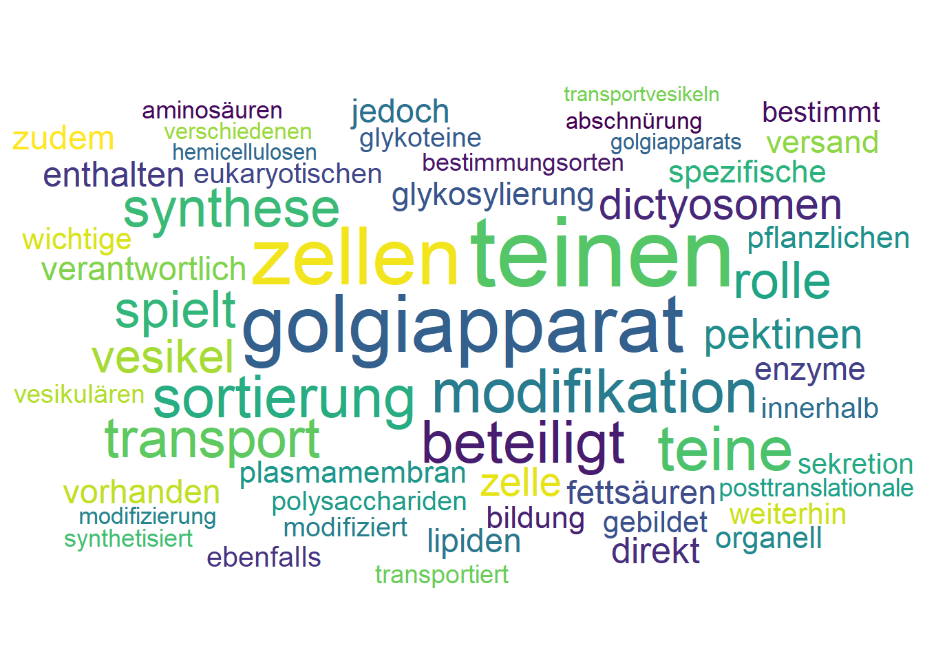 Zudem ist der Golgi-Apparat unerlässlich für die Synthese und Modifikation von Zellwandkomponenten in pflanzlichen Zellen, einschließlich Pektinen und Hemicellulosen. Im Gegensatz zu Cellulose, die außerhalb des Golgi-Apparats erzeugt wird, tragen diese Komponenten zu der strukturellen Integrität und Funktion der pflanzlichen Zellwand bei.