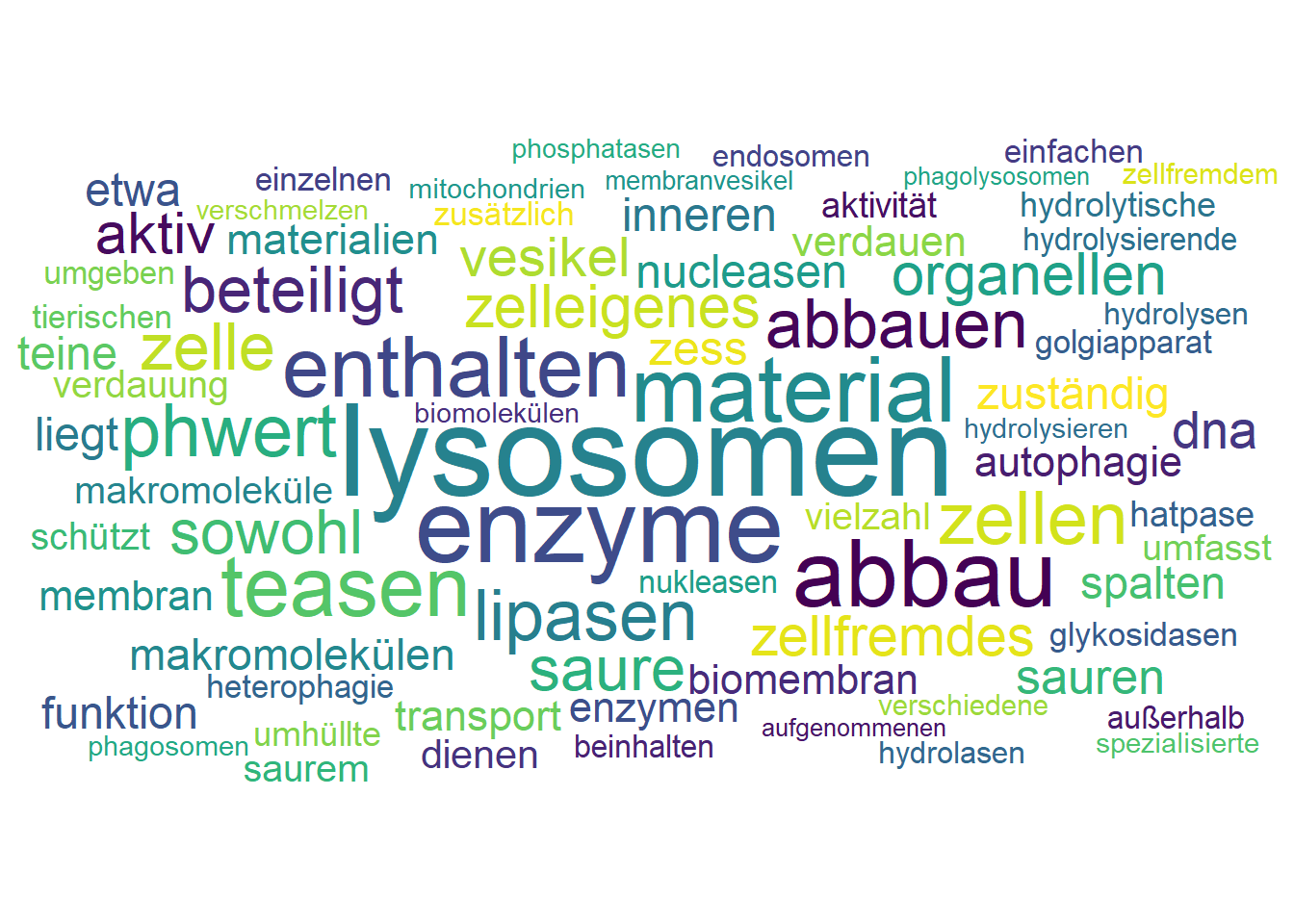 Lysosomen enthalten eine Vielzahl an hydrolytischen Enzymen, die Biomoleküle bei einem optimalen pH-Wert von etwa 4 bis 4,5 abbauen können. Dazu gehören: