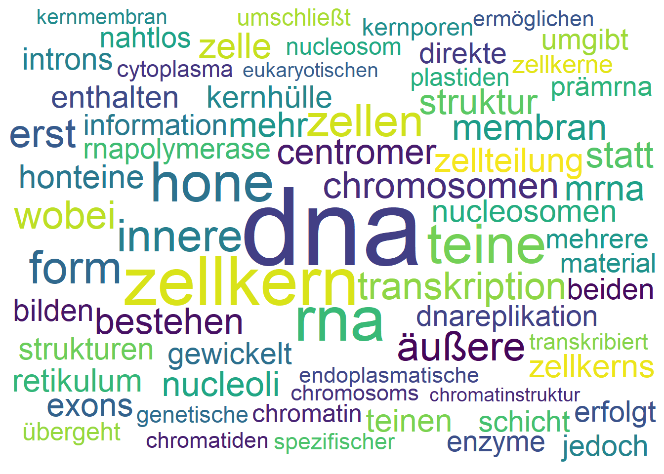 Der Zellkern ist das Steuerzentrum der Zelle, welches die gesamte genetische Information in Form von DNA enthält. Funktionen wie DNA-Replikation, Transkription sowie die Organisation dieser DNA in einer komplexen Struktur namens Chromatin sind zentral für die genetische Regulation und Expression. Die Prozesse werden hier nur kurz angerissen und in einem späteren Kapitel nochmal intensiver behandelt.