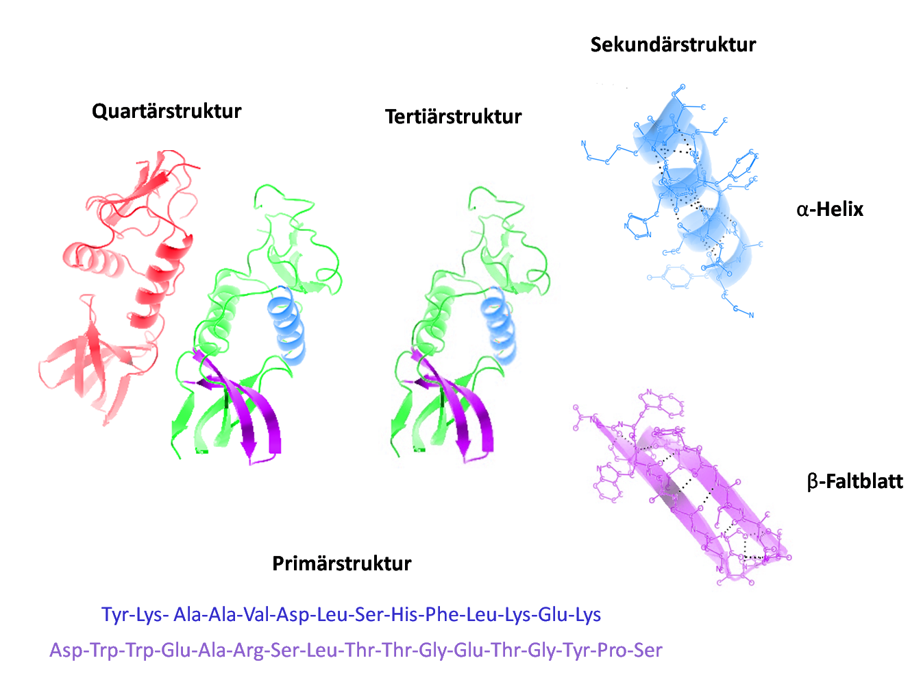 Die höheren Ordnungen der Proteinstruktur entstehen durch Faltungen und Interaktionen, die weit über die lineare Sequenz ihrer Aminosäuren hinausgehen.