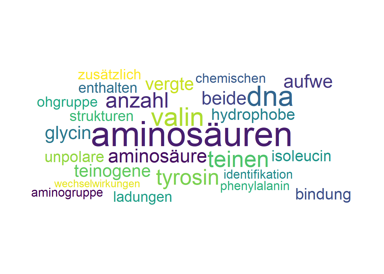 - Hydrophobe Aminosäuren wie Leucin, Isoleucin und Valin, die vorwiegend in den inneren Regionen von Proteinen zu finden sind, um Wasserkontakt zu vermeiden.