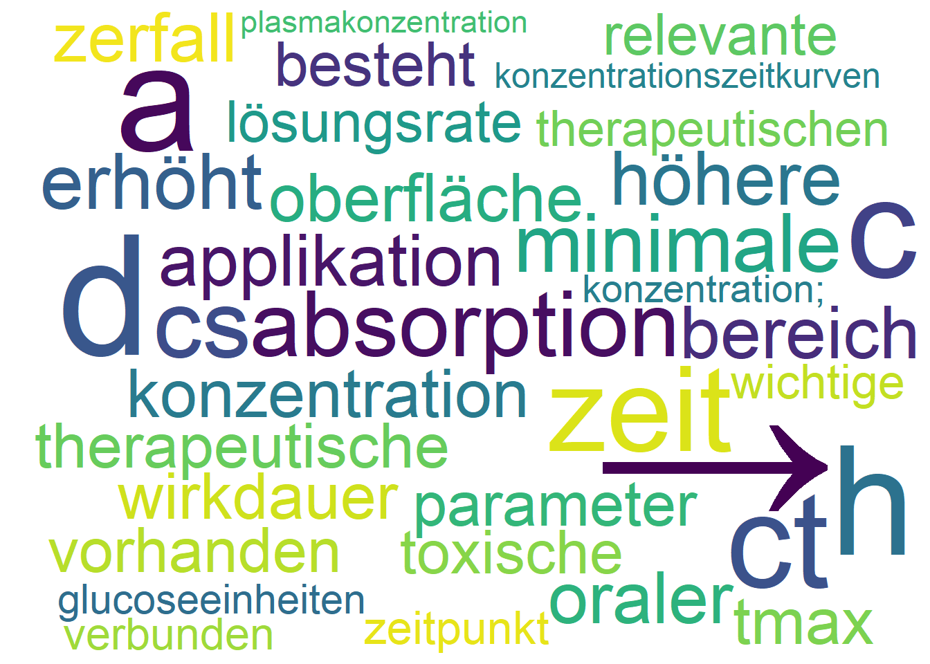 - Cmax: Maximale Plasmakonzentration – gibt an, wie hoch der größte Arzneistoffspiegel im Blut wird.