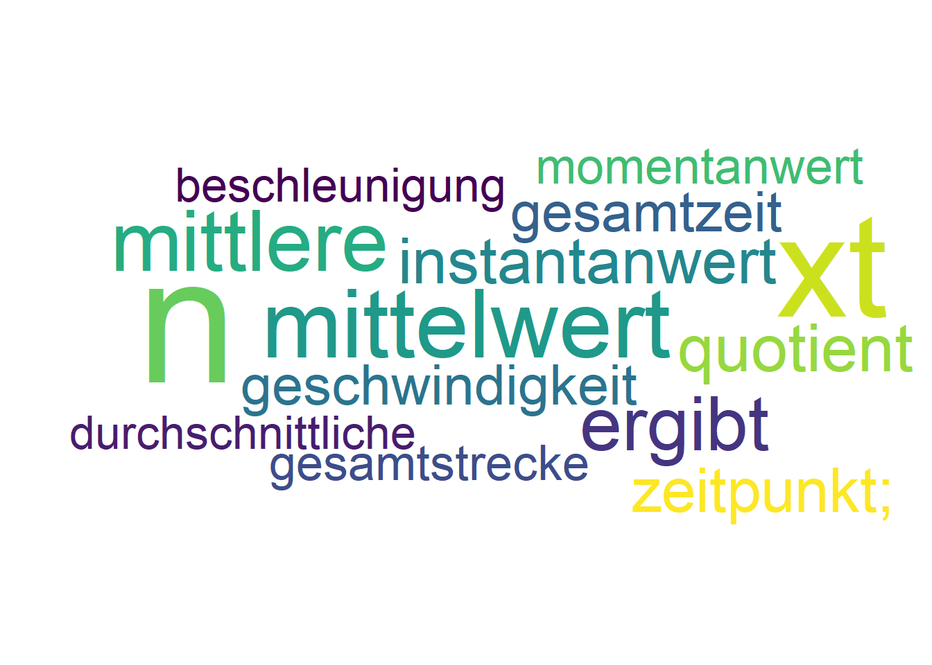 Mittelwert (über ein Zeitintervall): \[ \text{Mittelwert} = \frac{\text{Summe aller Einzelwerte}}{\text{Anzahl der Werte}} \] Bei kontinuierlichen Größen (wie bei Bewegungen): \[ \text{Mittelwert über Zeit} = \frac{1}{t_2-t_1}\int_{t_1}^{t_2} x(t) \, dt \]