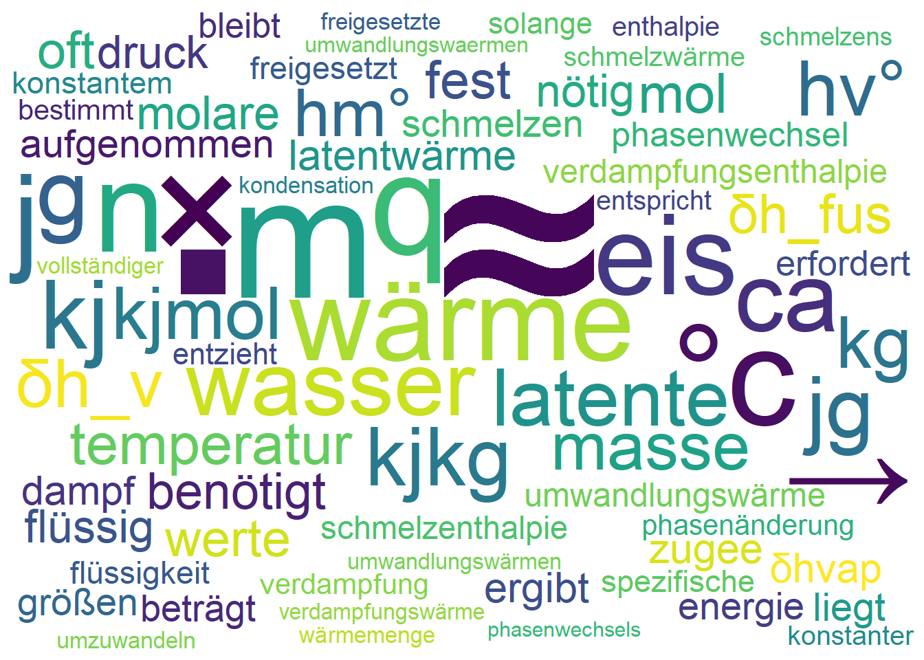- Für Wasser: \(\text{L}_{\text{Schmelzen}} \approx 334\,\text{J/g}\), \(\text{L}_{\text{Verdampfen}} \approx 2257\,\text{J/g}\)