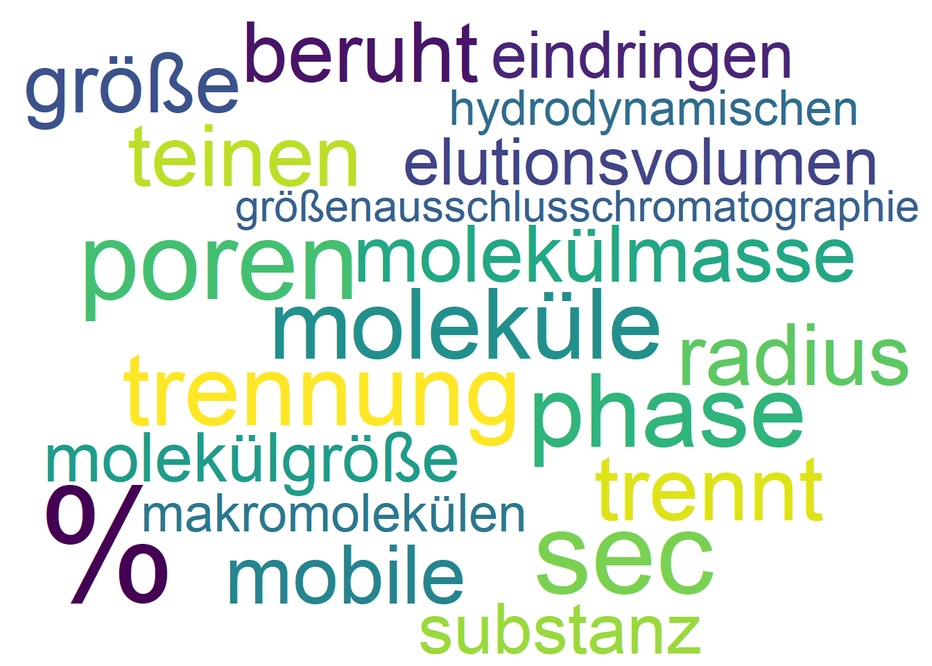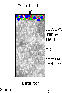 Bei der SEC gibt es keine direkte Interaktion zwischen den Analyten und der stationären Phase. Die Trennung beruht ausschließlich auf der Größendifferenz.