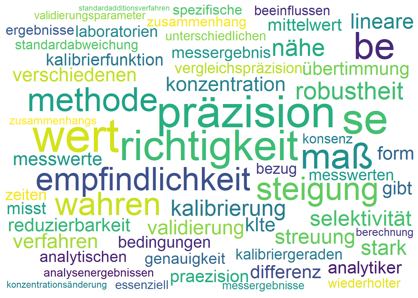 Neben der Erstellung einer korrekten Kalibrierkurve ist die Validierung eines Analyseverfahrens unerlässlich. Hierbei werden Leistungsmerkmale wie die Präzision (die Reproduzierbarkeit von Analyseergebnissen), die Richtigkeit (die Übereinstimmung mit dem wahren Wert), sowie Selektivität und Robustheit überprüft. Durch Validierung wird gesichert, dass das Analyseverfahren für den beabsichtigten Zweck geeignet ist.