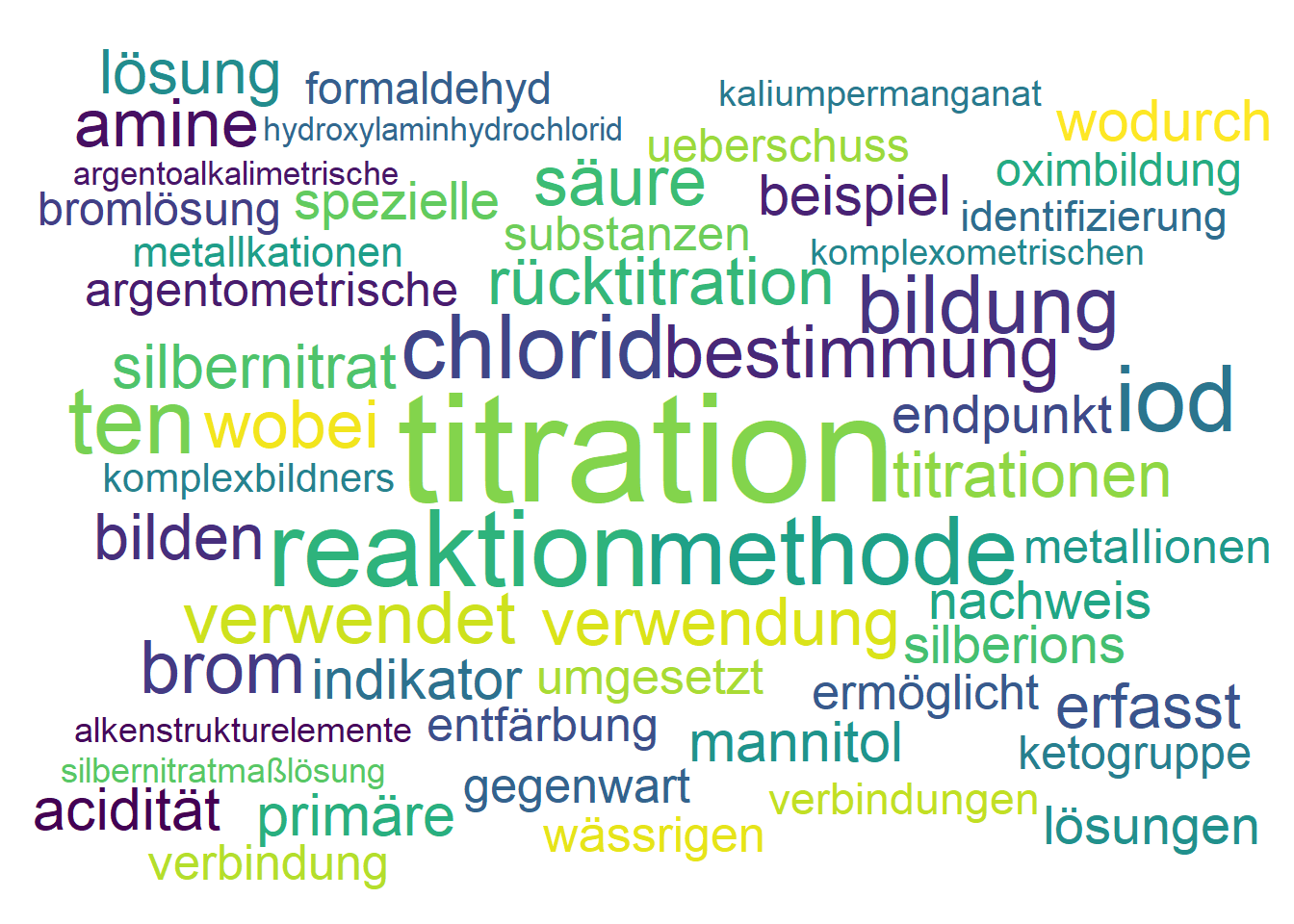 Die argentometrische Titration und die spezifische Nutzung von Silbernitrat zur Identifizierung und Quantifizierung von Chlorid-Ionen ist ein klassischer Prüfungspunkt.