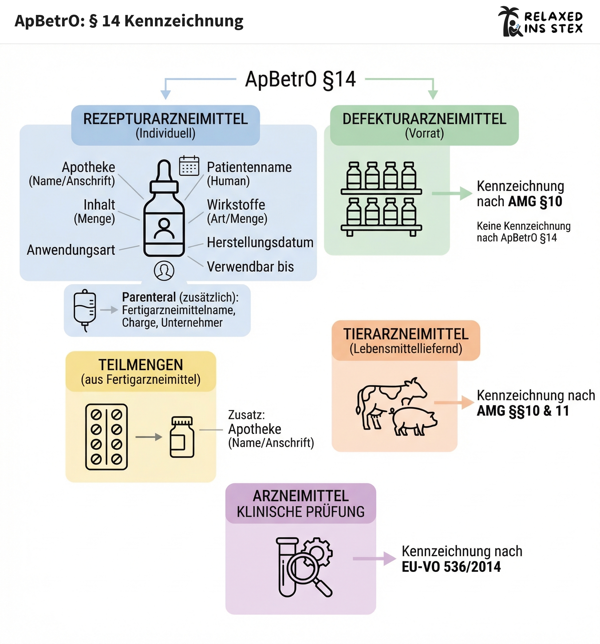 Kennzeichnungsanforderungen nach ApBetrO §14: Rezeptur-, Defektur- und Tierarzneimittel