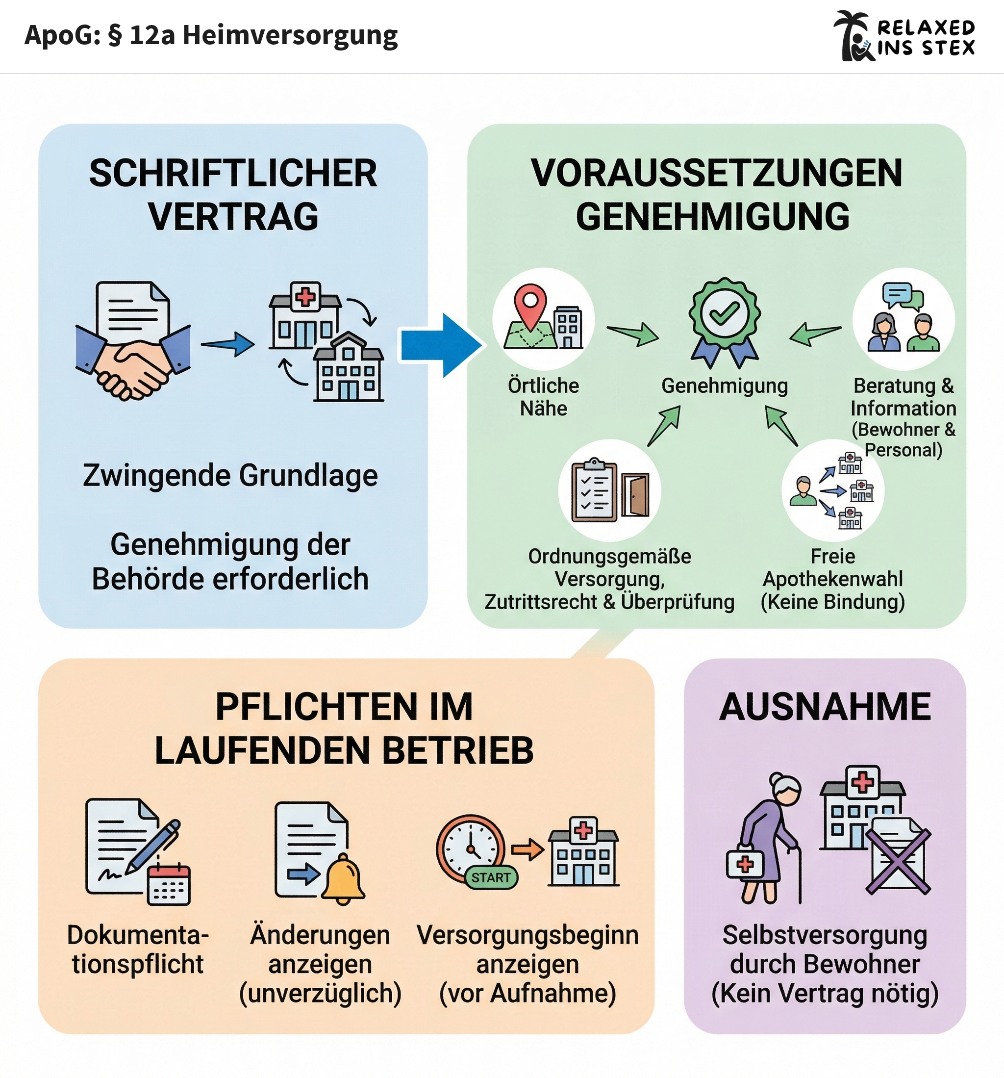 § 12a ApoG regelt die besonderen Anforderungen an die Versorgung von Bewohnern von Heimen mit Arzneimitteln und apothekenpflichtigen Medizinprodukten. Ziel ist die Sicherheit der Bewohner und die transparente Zusammenarbeit zwischen Apotheken und Heimen.