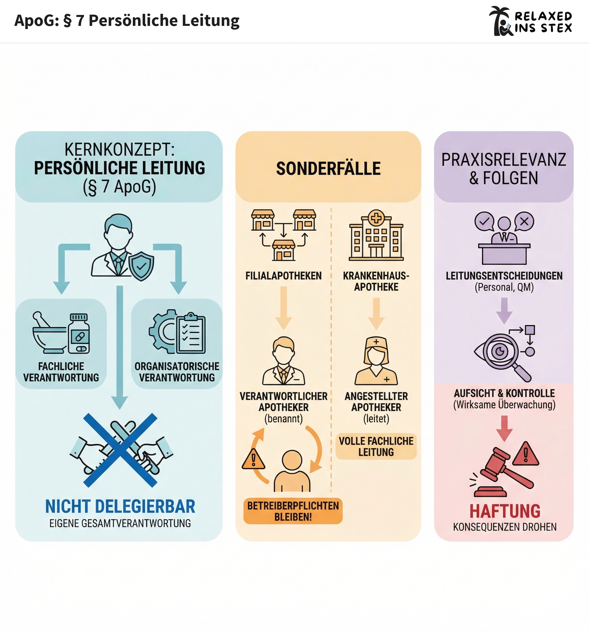 - Haftung: Wird die Apotheke nicht persönlich und eigenverantwortlich geführt, können berufs- und verwaltungsrechtliche Konsequenzen drohen.